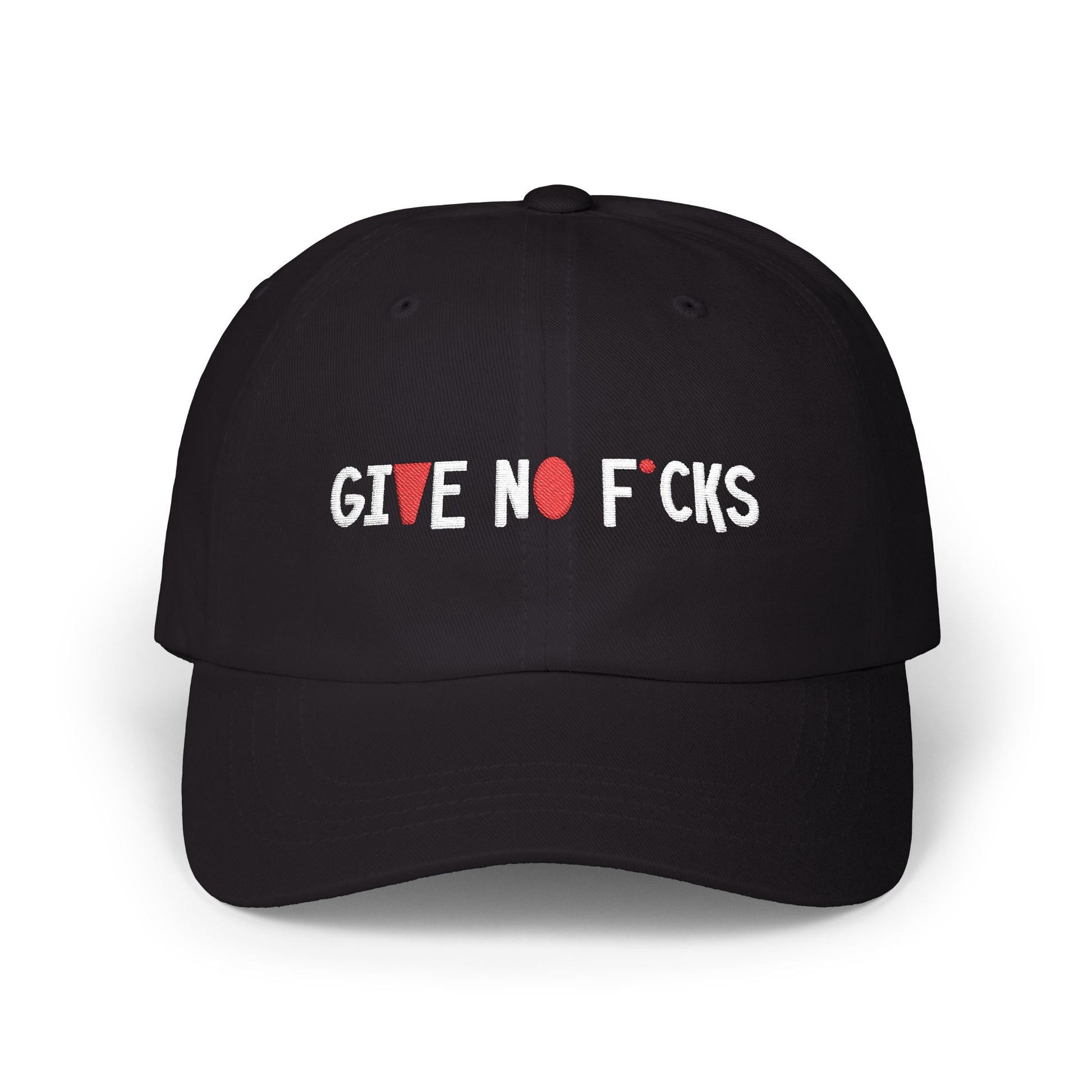 A bold statement cap with the quote 'Give No Fucks', perfect for those who want to express their carefree attitude. Comfortable fit for everyday wear, suitable for adults only.