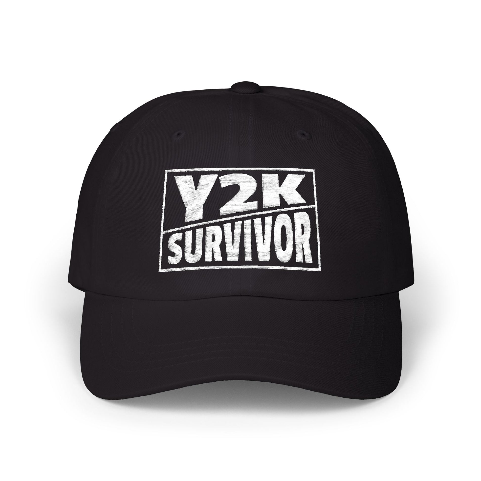 Show your love for all the millennials who have survived the Y2K scare with this embroidered 'Y2K Survivor' Dad Cap. Perfect for casual wear and adding a nostalgic touch to your outfit. Ideal for millennials and nostalgia enthusiasts, relevant for Y2K-themed parties and events.