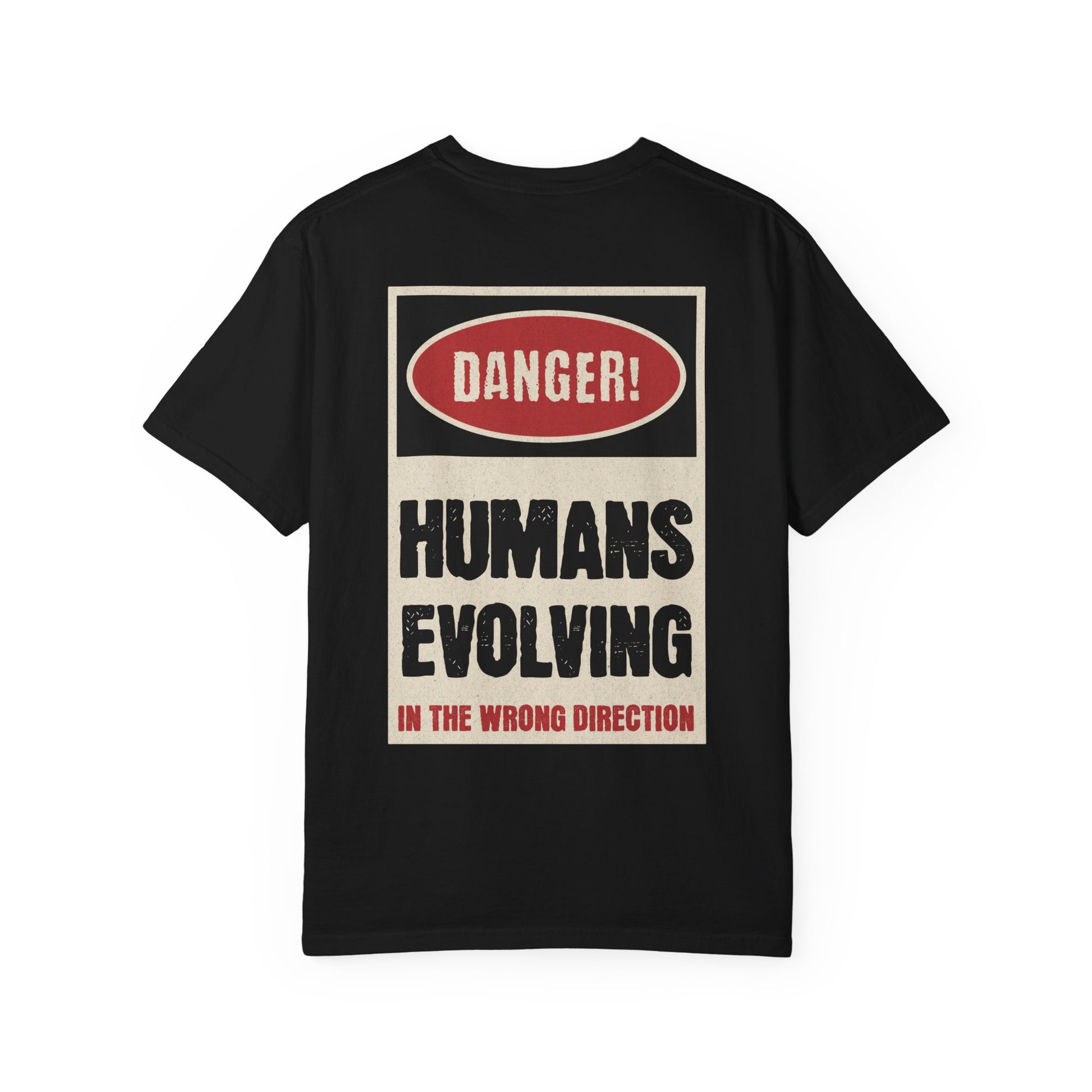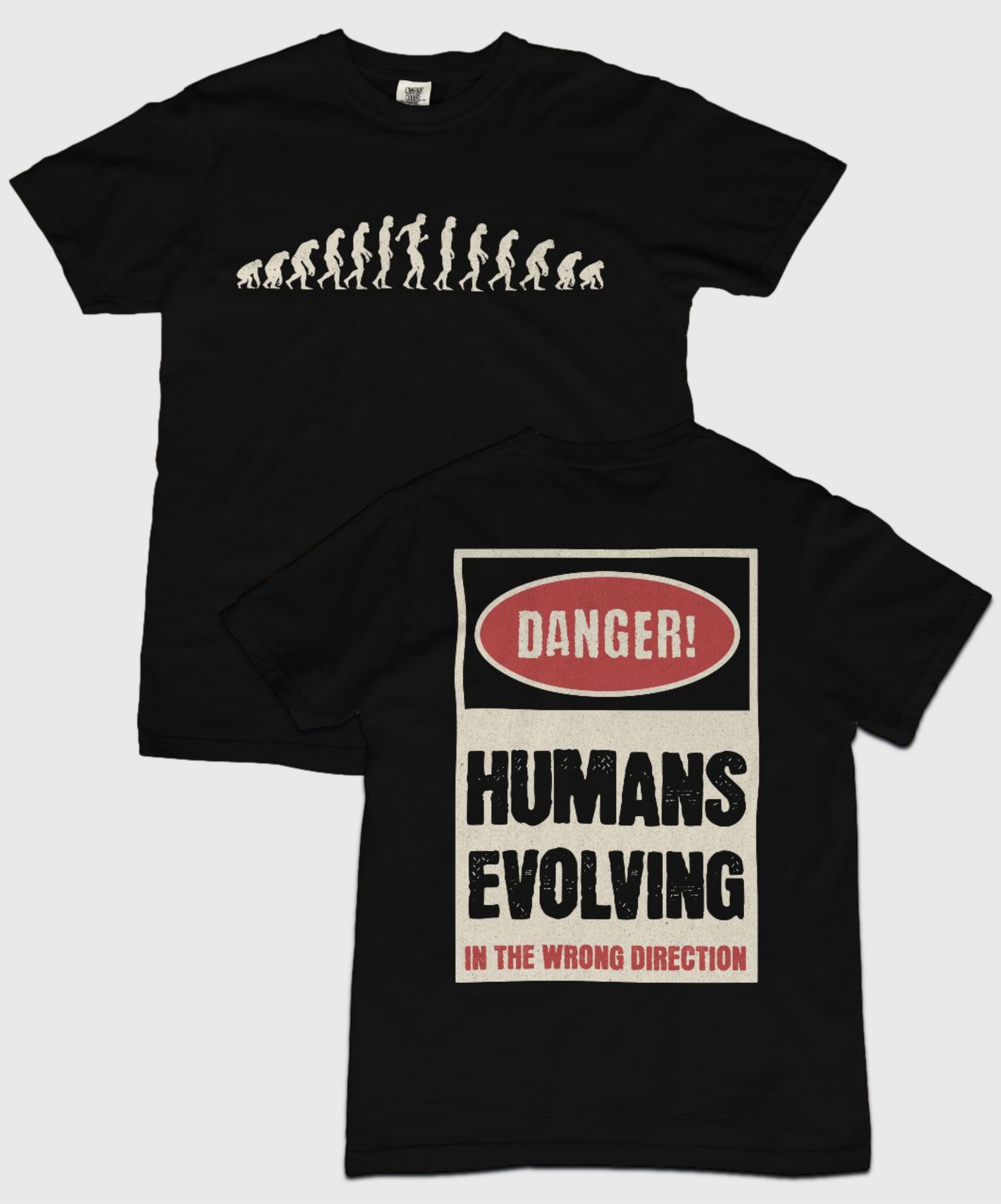 Danger Humans Evolving in the Wrong Direction highlights the impact of human actions. It is perfect for those who enjoy humorous and thought-provoking apparel. It is ideal for occasions like Earth Day, environmental awareness events, or casual wear with a statement.