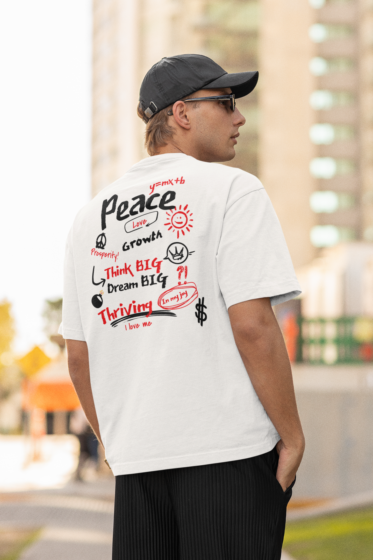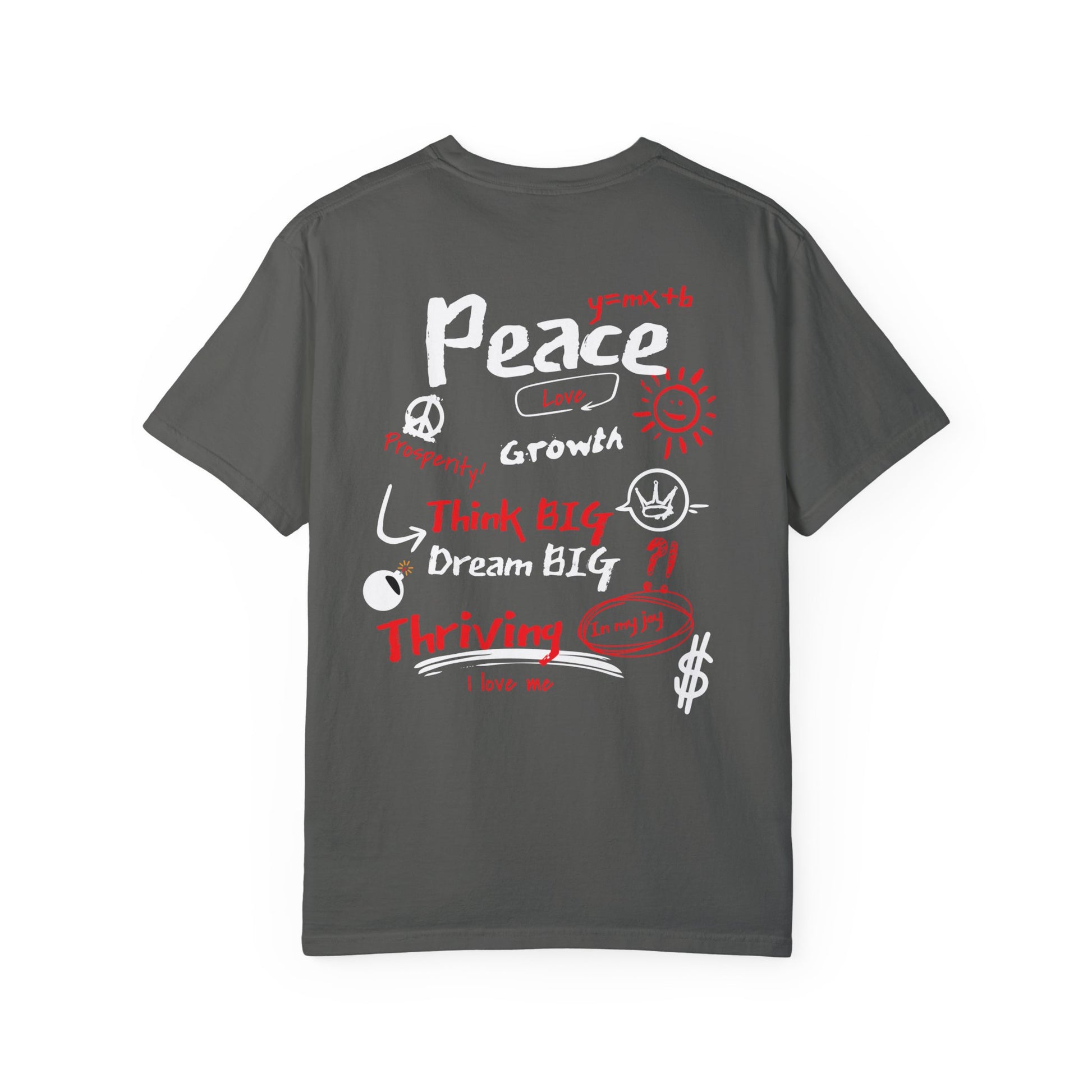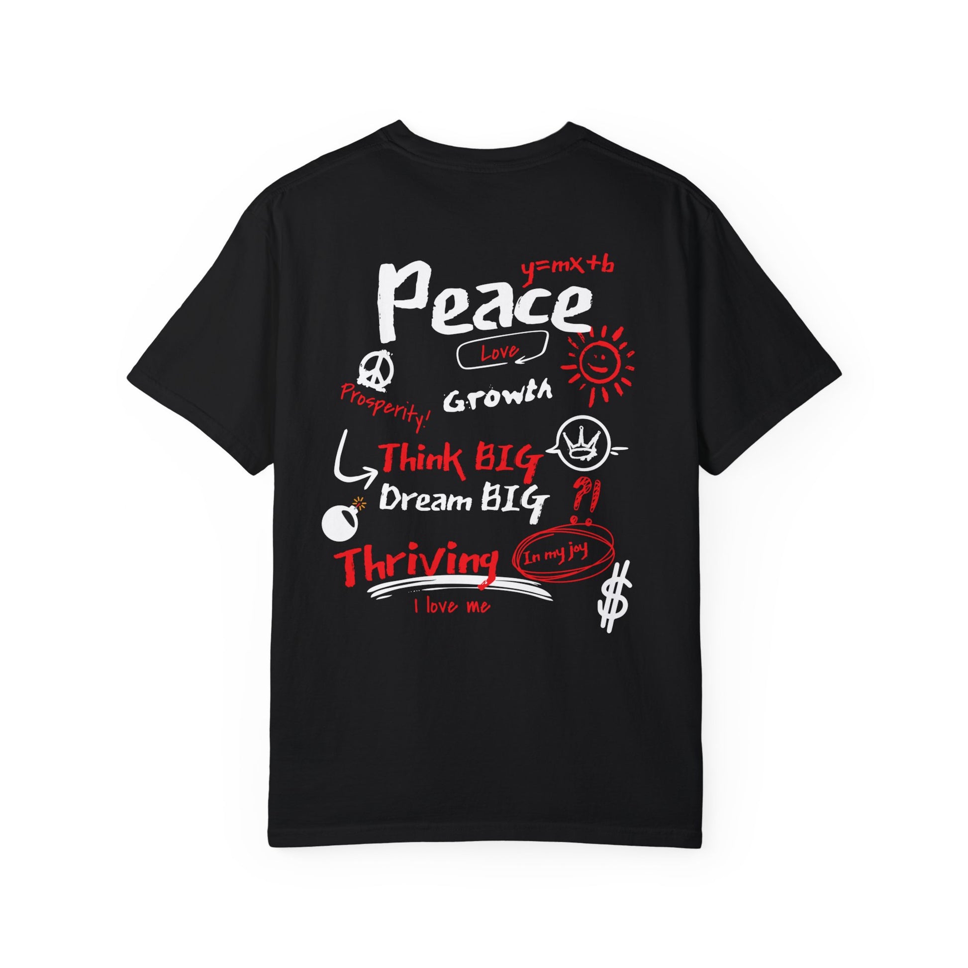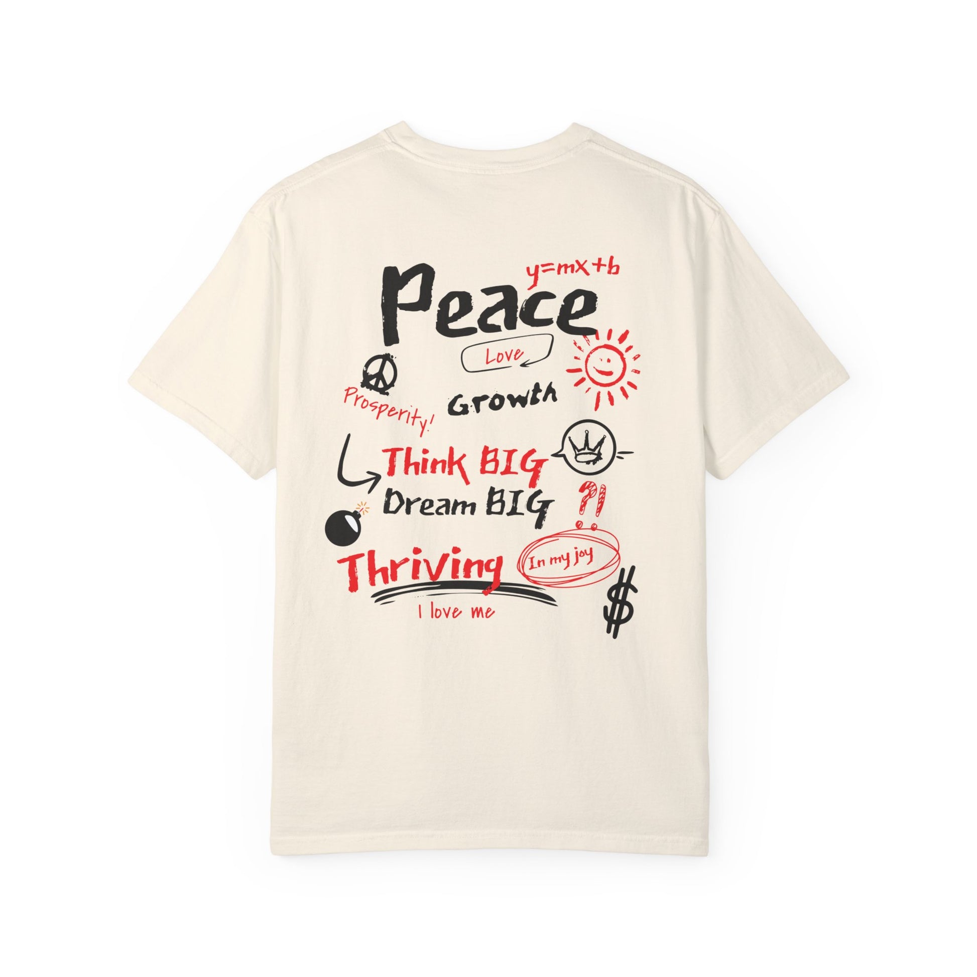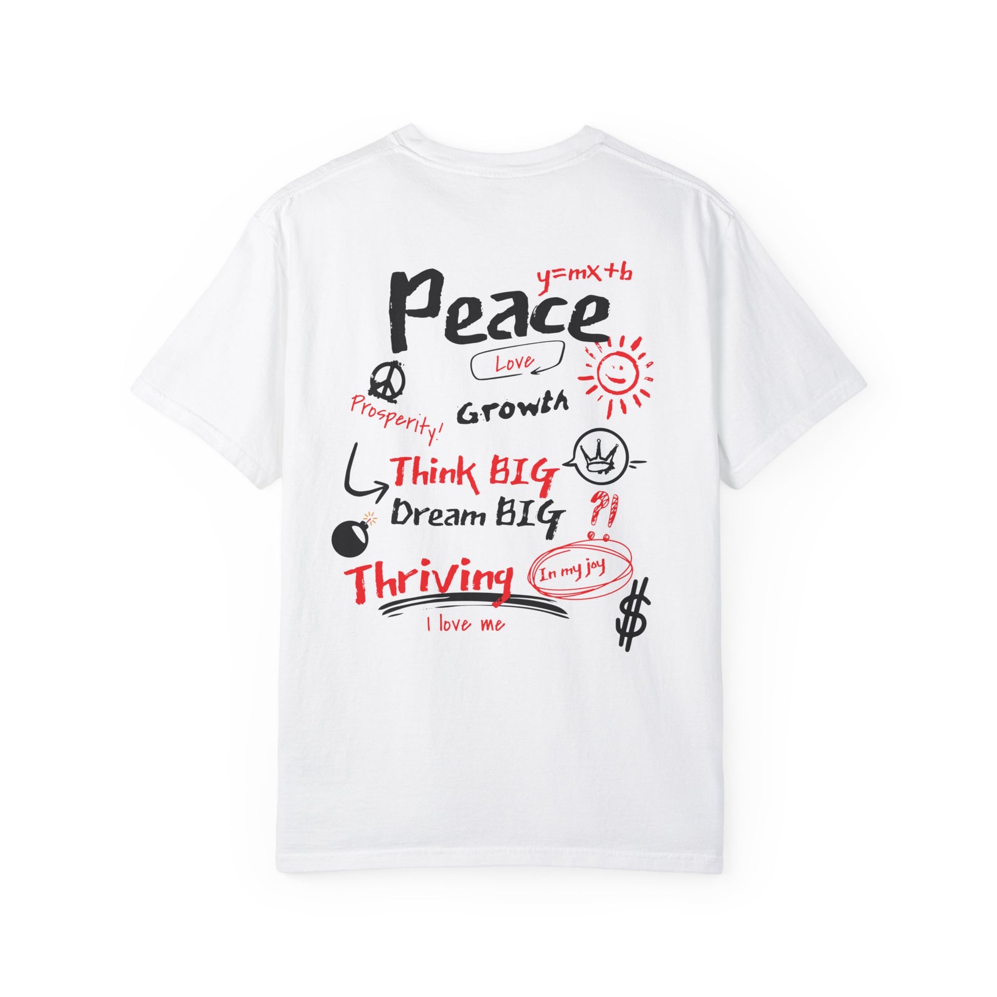 Embrace your best life with the "Manifest & Thrive" tee from Exploding Imagination! Featuring bold affirmations on the front and a vibrant, motivational collage on the back, this t-shirt inspires you to dream big and thrive. Perfect for self-expression or as a thoughtful gift. For a looser fit, we recommend sizing up one size from your normal.