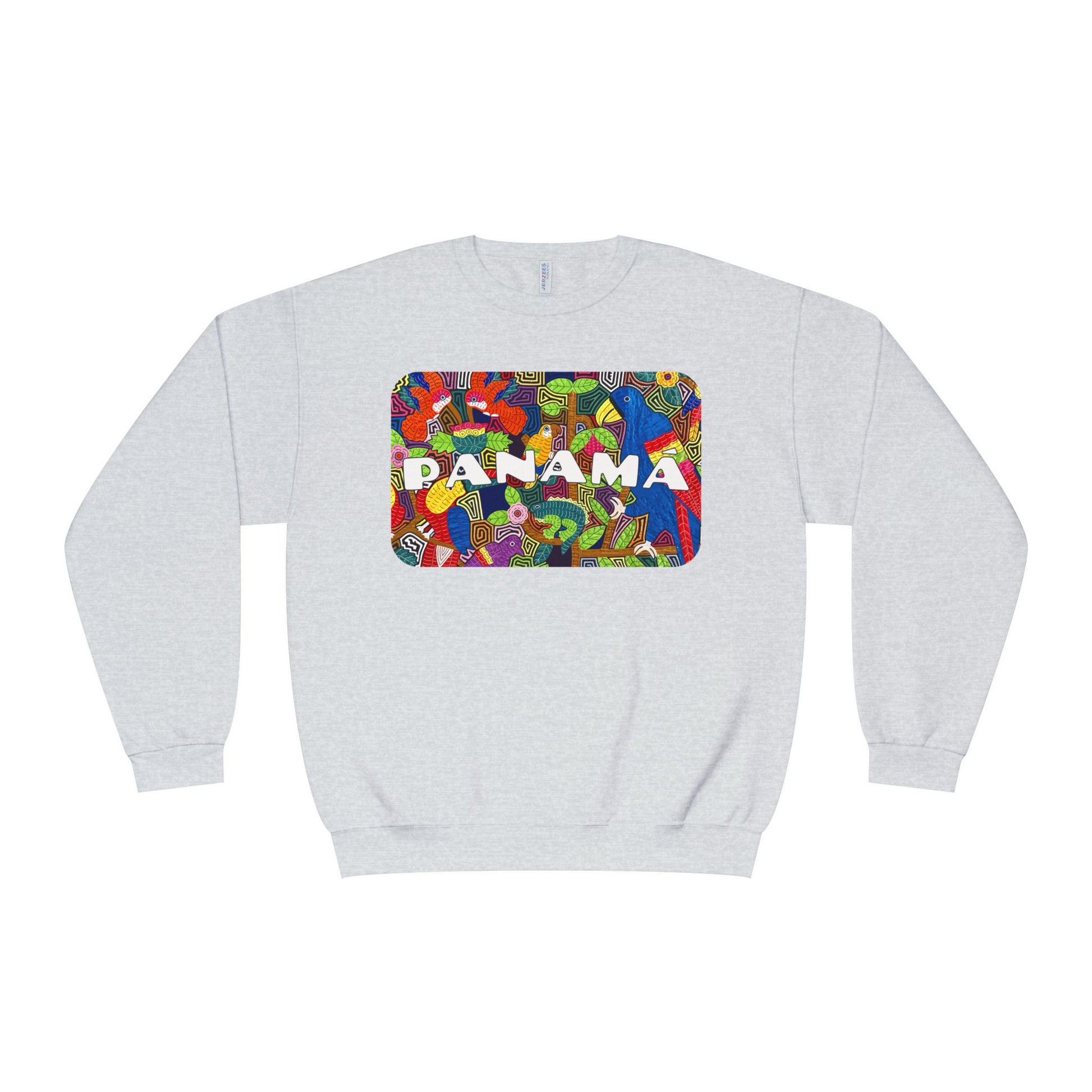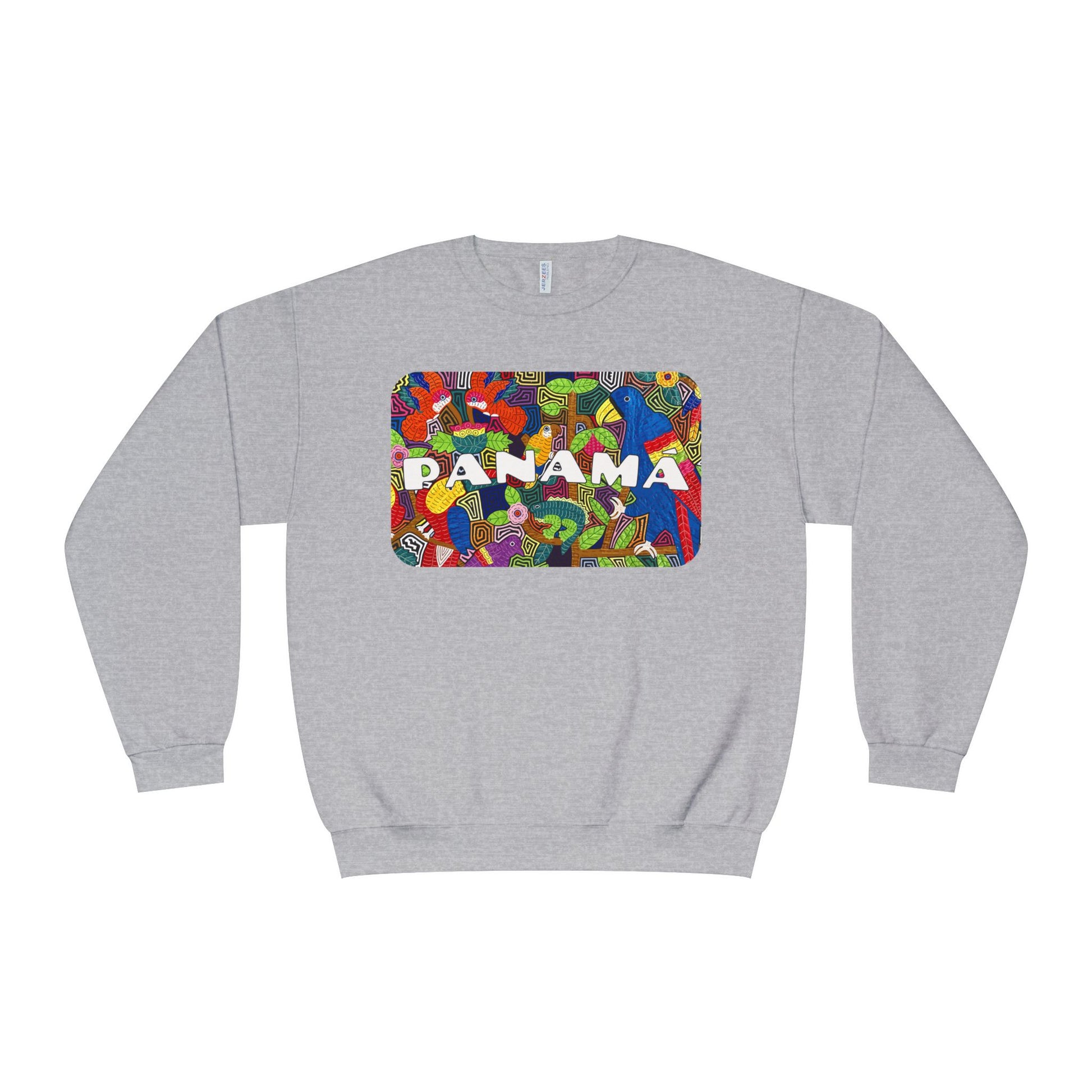 This vibrant Sweatshirt is inspired by traditional Panamanian Mola art, featuring intricate patterns of tropical birds, foliage, and geometric shapes. The design celebrates Panama's rich cultural heritage and natural beauty, making it a striking representation of the country's art and biodiversity. Perfect for those who appreciate colorful and meaningful designs, this sweatshirt is ideal for anyone looking to add a touch of cultural flair to their wardrobe. Great for celebrating Panama Day, showcasing national pride, or simply embracing the beauty of traditional art.