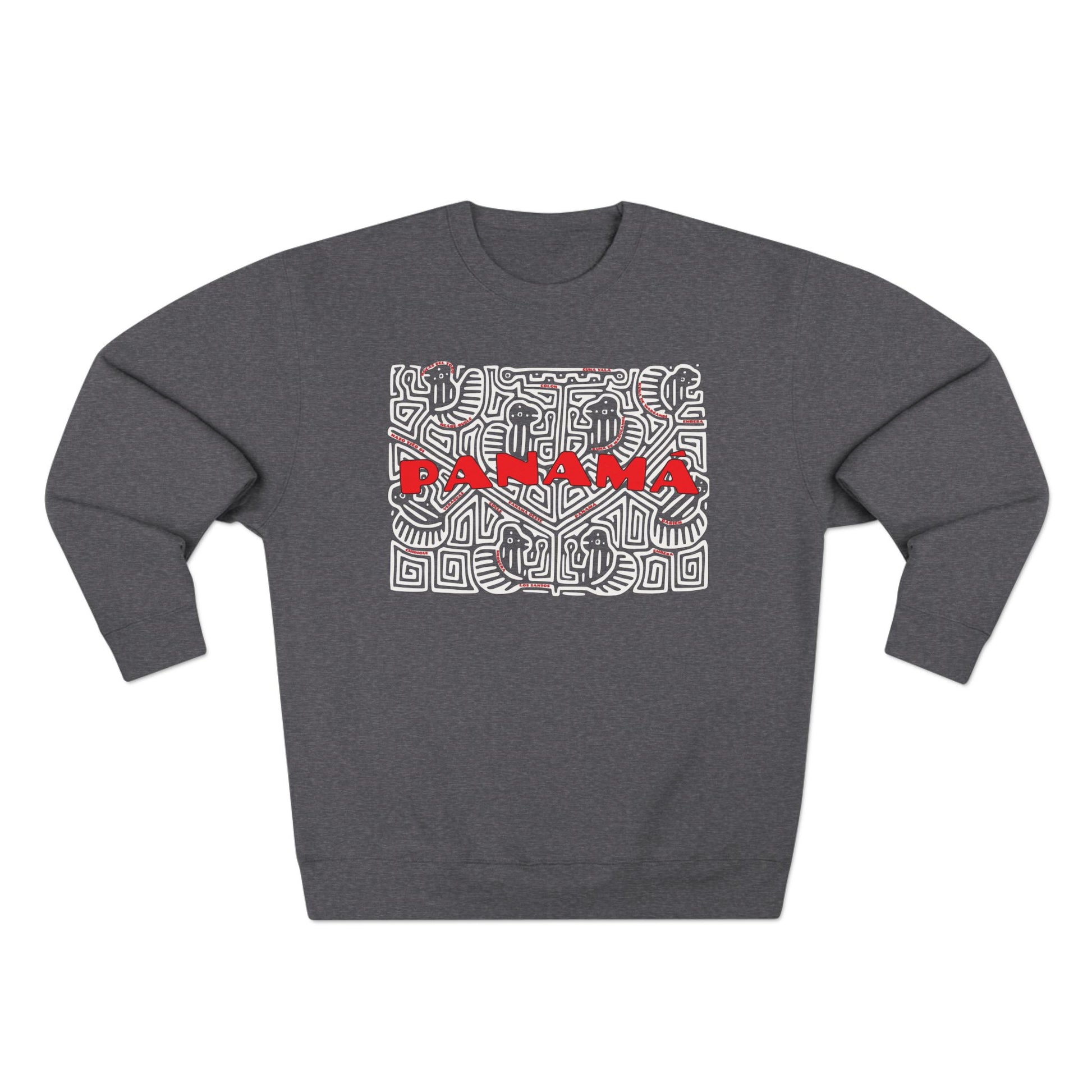 A cozy Sweatshirt featuring intricate Mola designs inspired by Panama. The names of Panama's provinces and indigenous comarcas are intricately woven into the artwork, giving off a vibrant and cultural vibe. Perfect for those who appreciate unique and colorful designs, this Sweatshirt is a great addition to any casual wardrobe. Ideal for those who love cultural and artistic pieces, perfect for wearing during cultural festivals or casual outings.