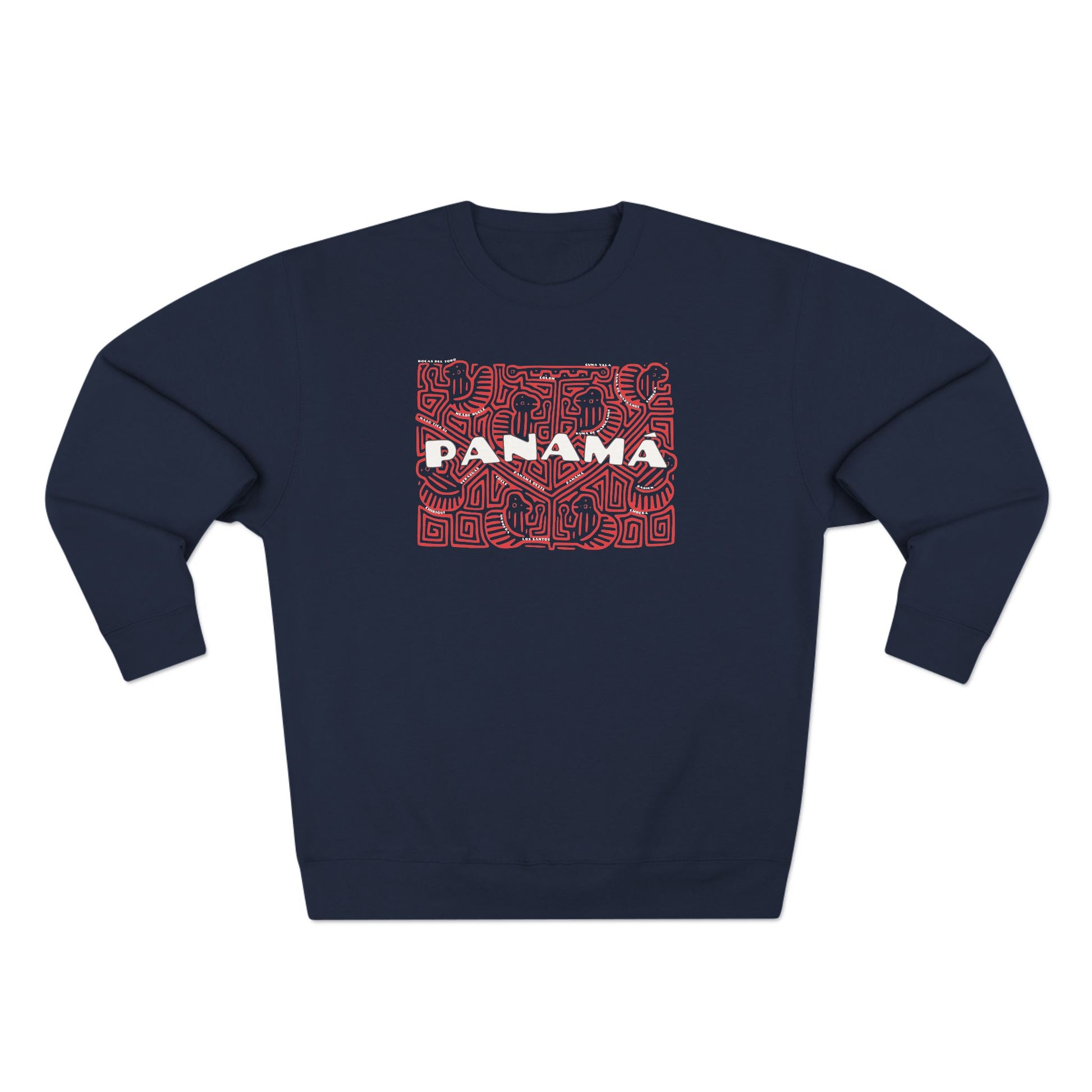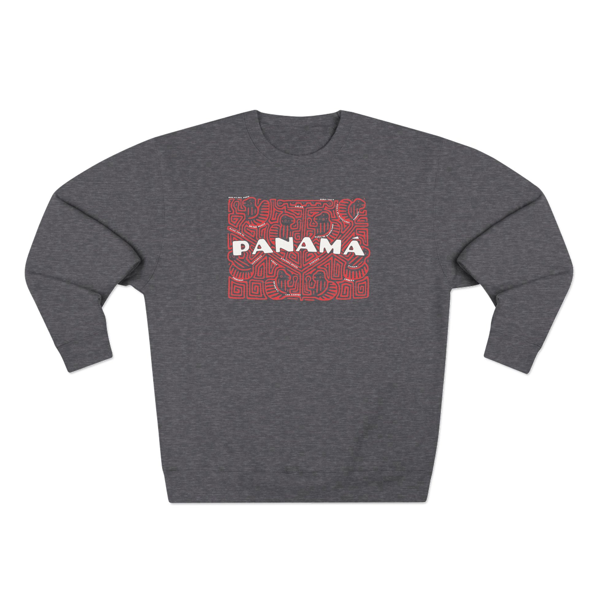 A cozy Sweatshirt featuring intricate Mola designs inspired by Panama. The names of Panama's provinces and indigenous comarcas are intricately woven into the artwork, giving off a vibrant and cultural vibe. Perfect for those who appreciate unique and colorful designs, this Sweatshirt is a great addition to any casual wardrobe. Ideal for those who love cultural and artistic pieces, perfect for wearing during cultural festivals or casual outings.