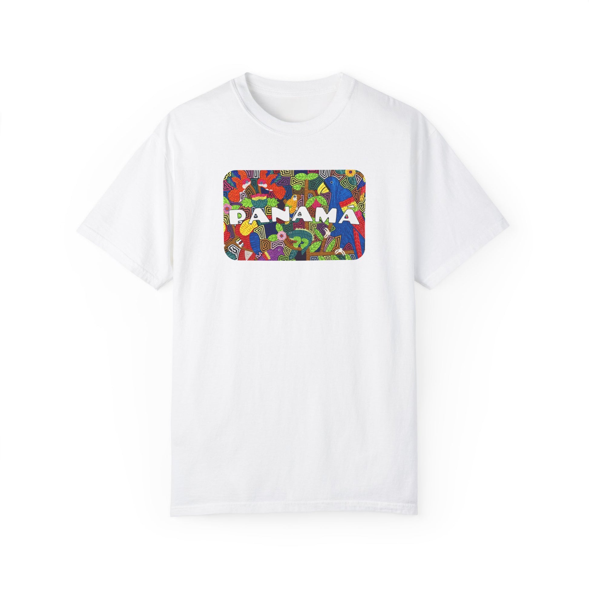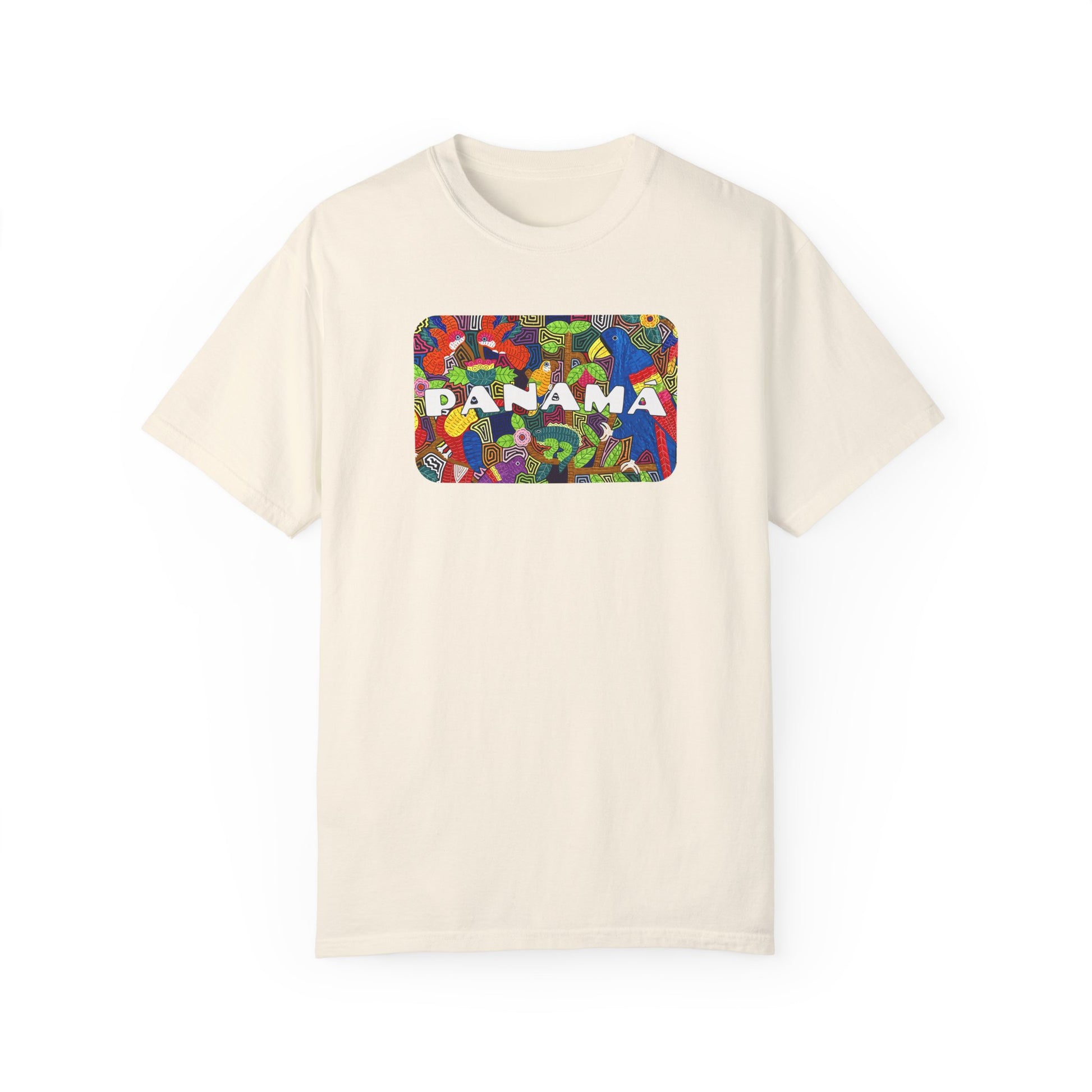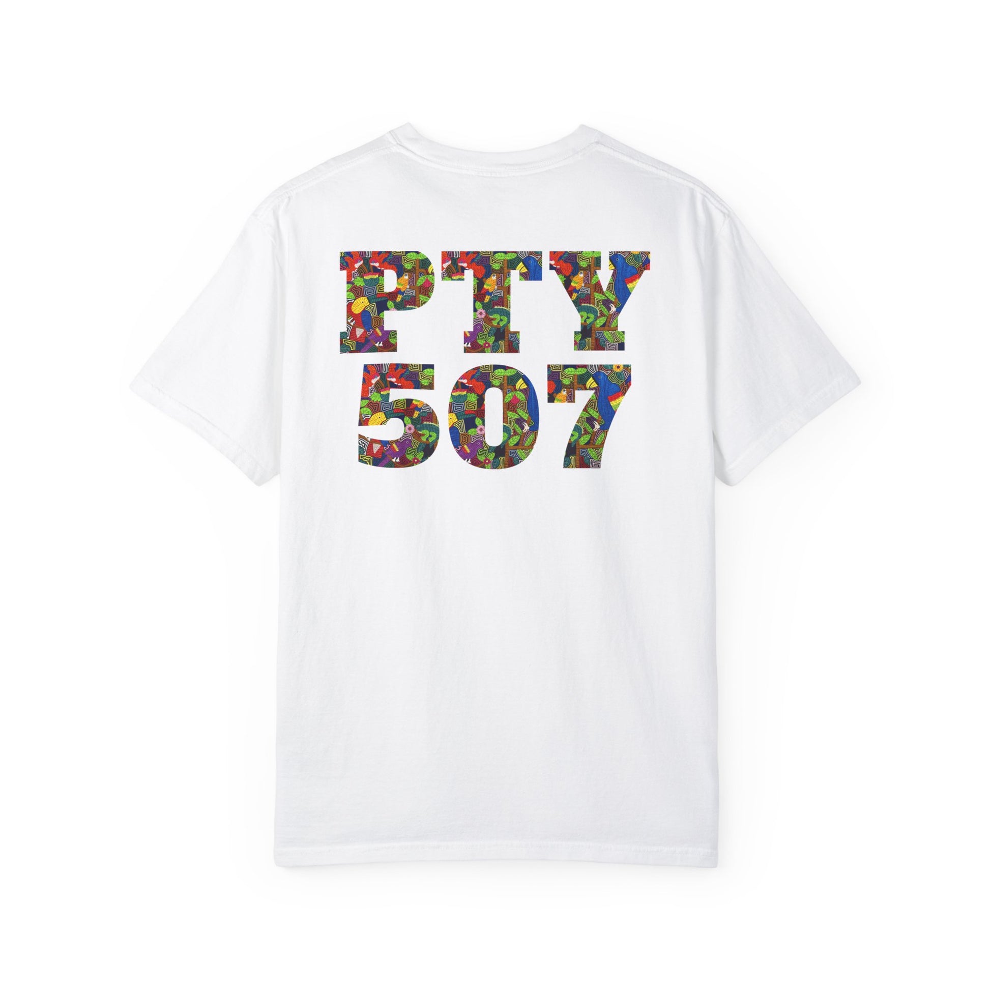 This vibrant t-shirt features a Mola-inspired design with "Panama" on the front and "PTY/507" on the back. Made with the Comfort Colors 1717 garment-dyed tee, it’s 100% ring-spun US cotton for a soft, relaxed fit. Durable with double-needle stitching and pre-shrunk for consistent sizing, it's perfect for casual wear or representing Panama with pride.