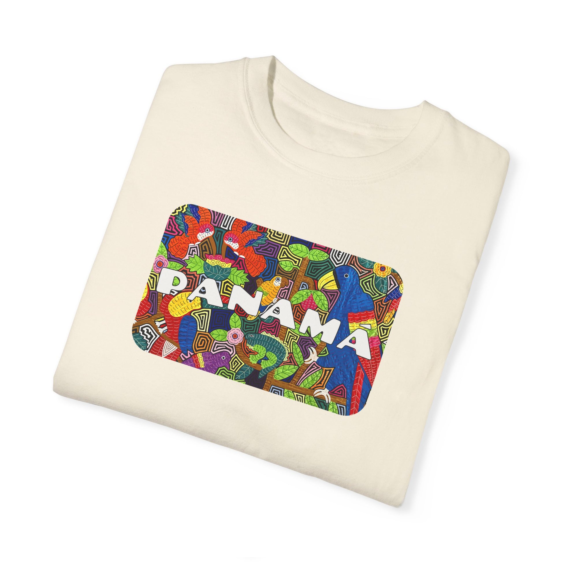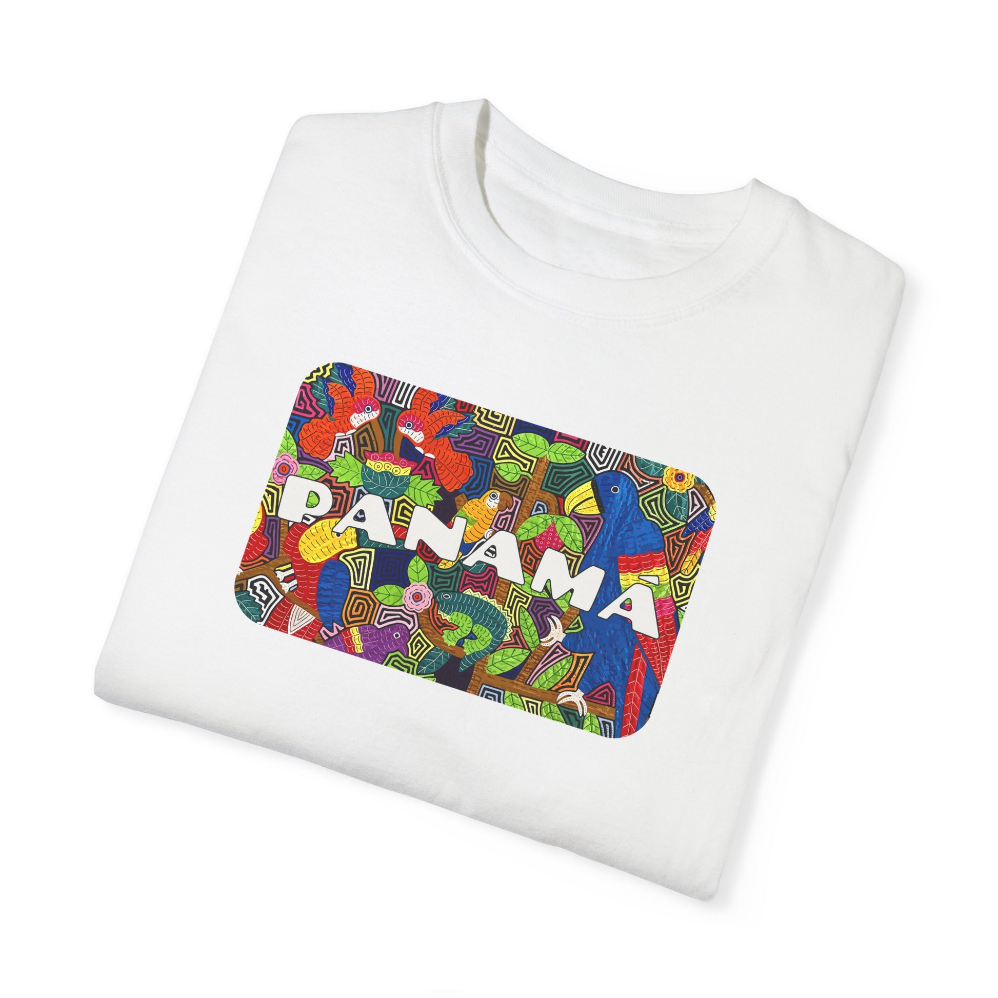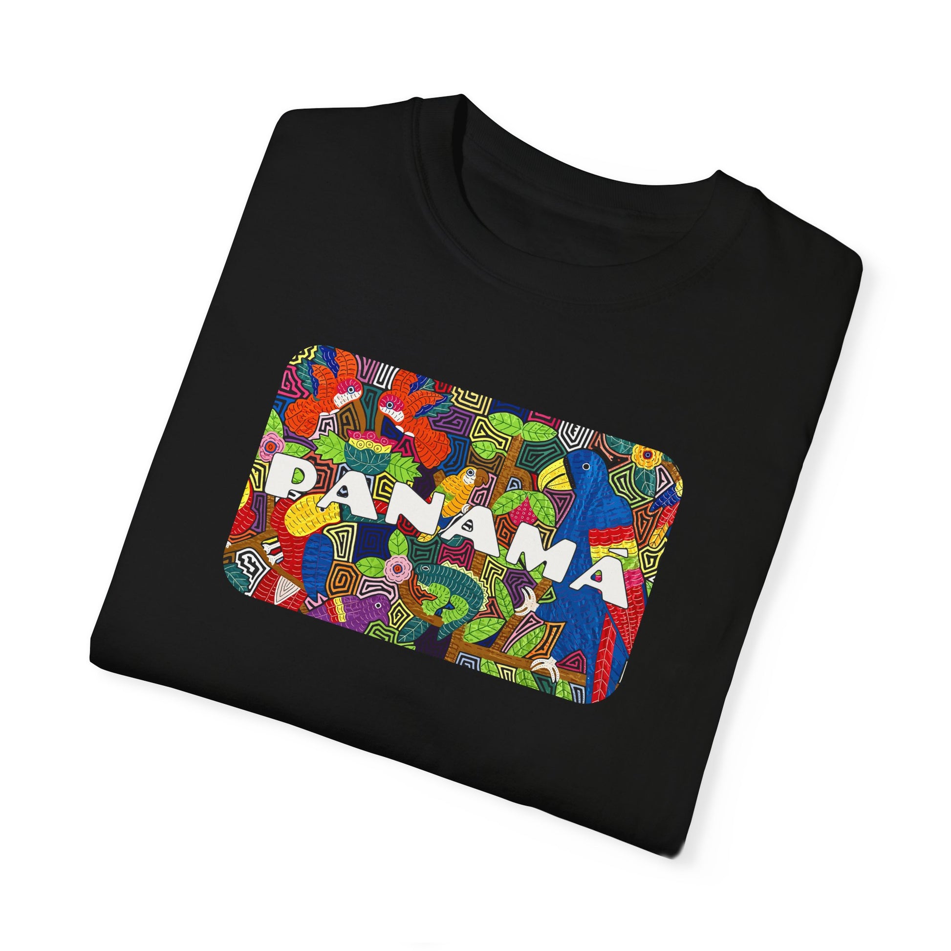 This vibrant t-shirt features a Mola-inspired design with "Panama" on the front and "PTY/507" on the back. Made with the Comfort Colors 1717 garment-dyed tee, it’s 100% ring-spun US cotton for a soft, relaxed fit. Durable with double-needle stitching and pre-shrunk for consistent sizing, it's perfect for casual wear or representing Panama with pride.