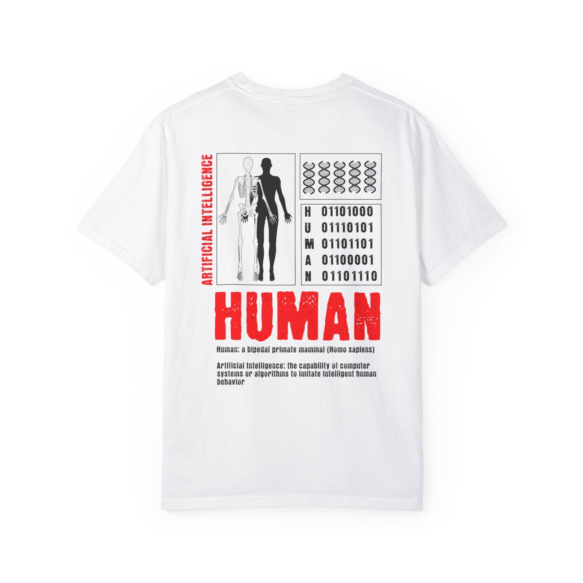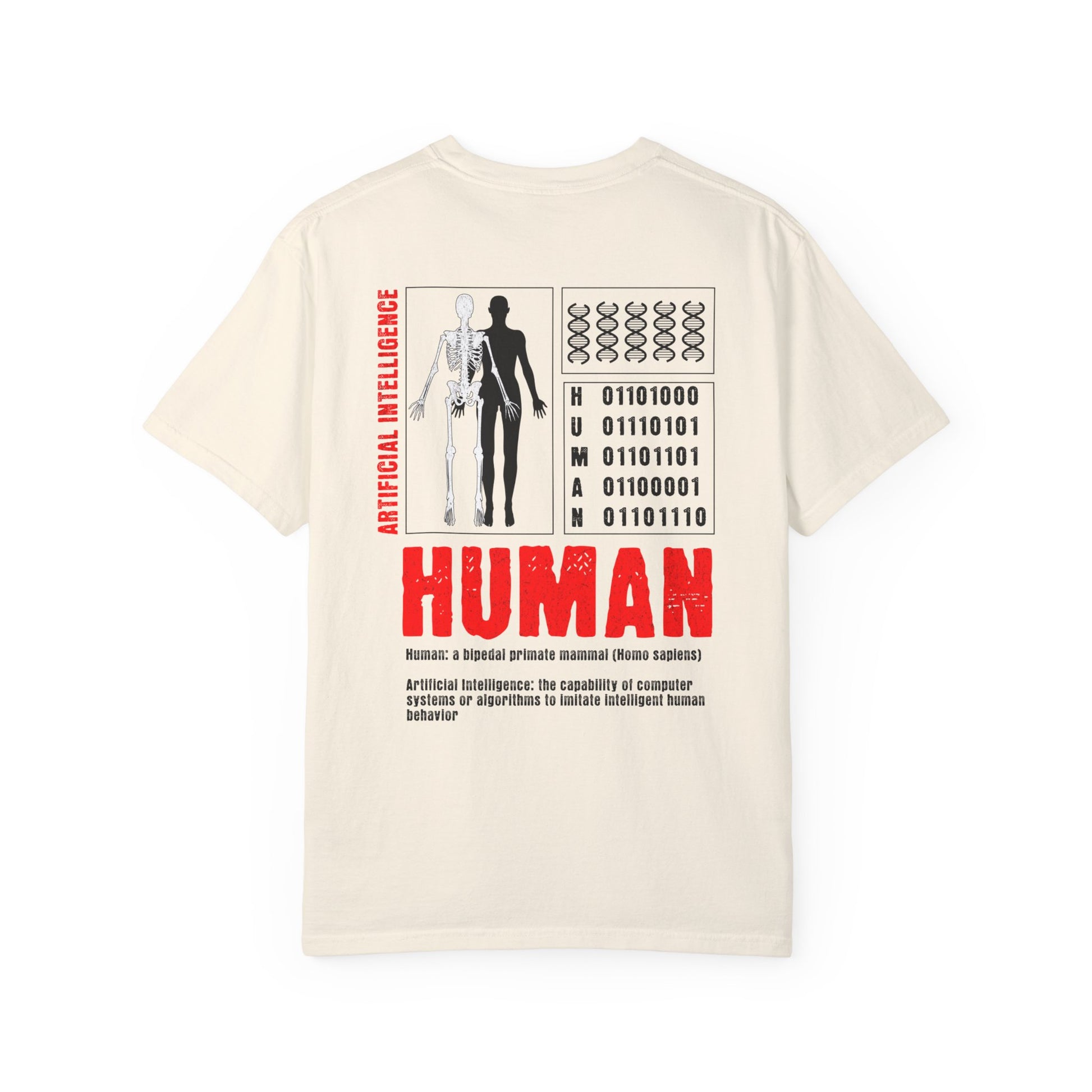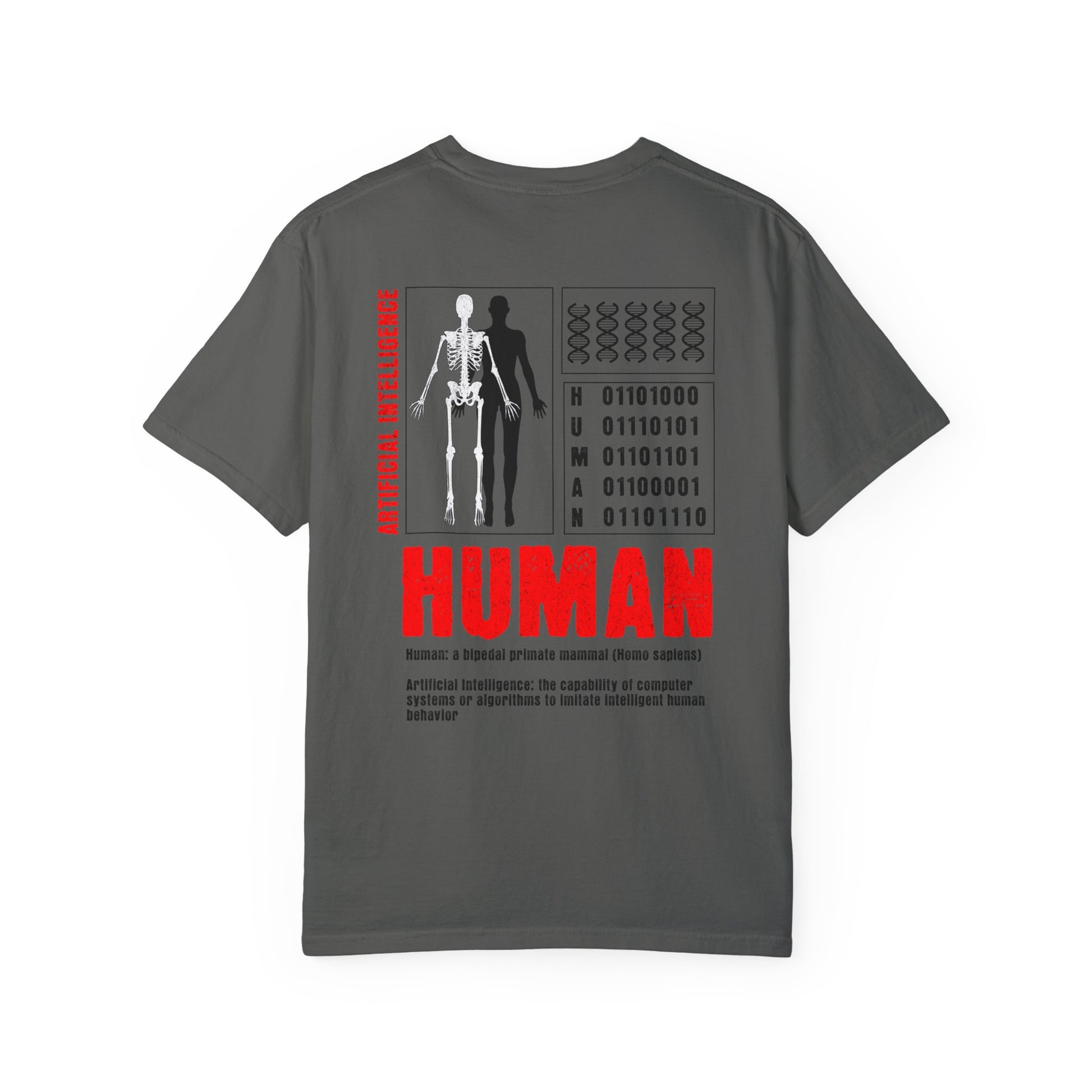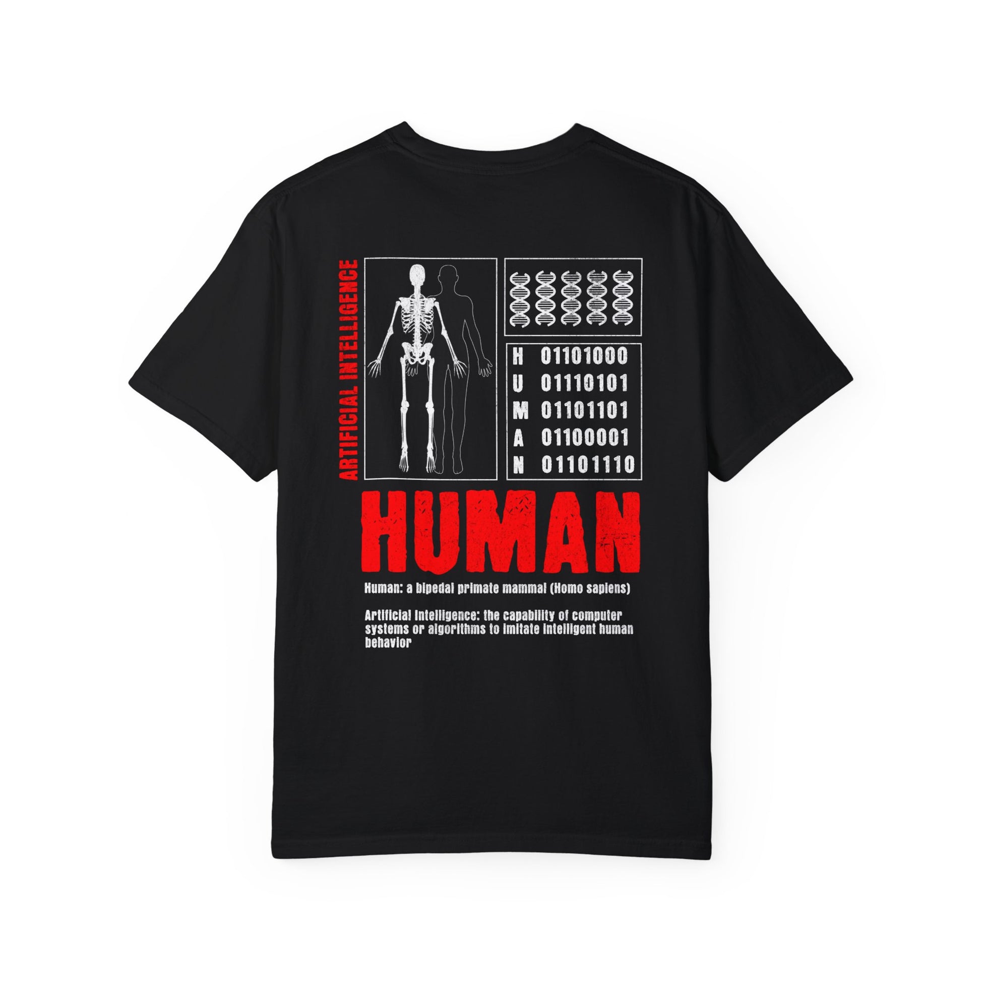 Witness the dawn of a new era with "The Birth of AI" t-shirt from Exploding Imagination! This design reimagines the iconic 'Creation of Adam' to symbolize the groundbreaking emergence of Artificial Intelligence by human hands. The front depicts the critical moment of creation, while the back showcases a blend of human anatomy and AI elements, celebrating the union of biology and technology.