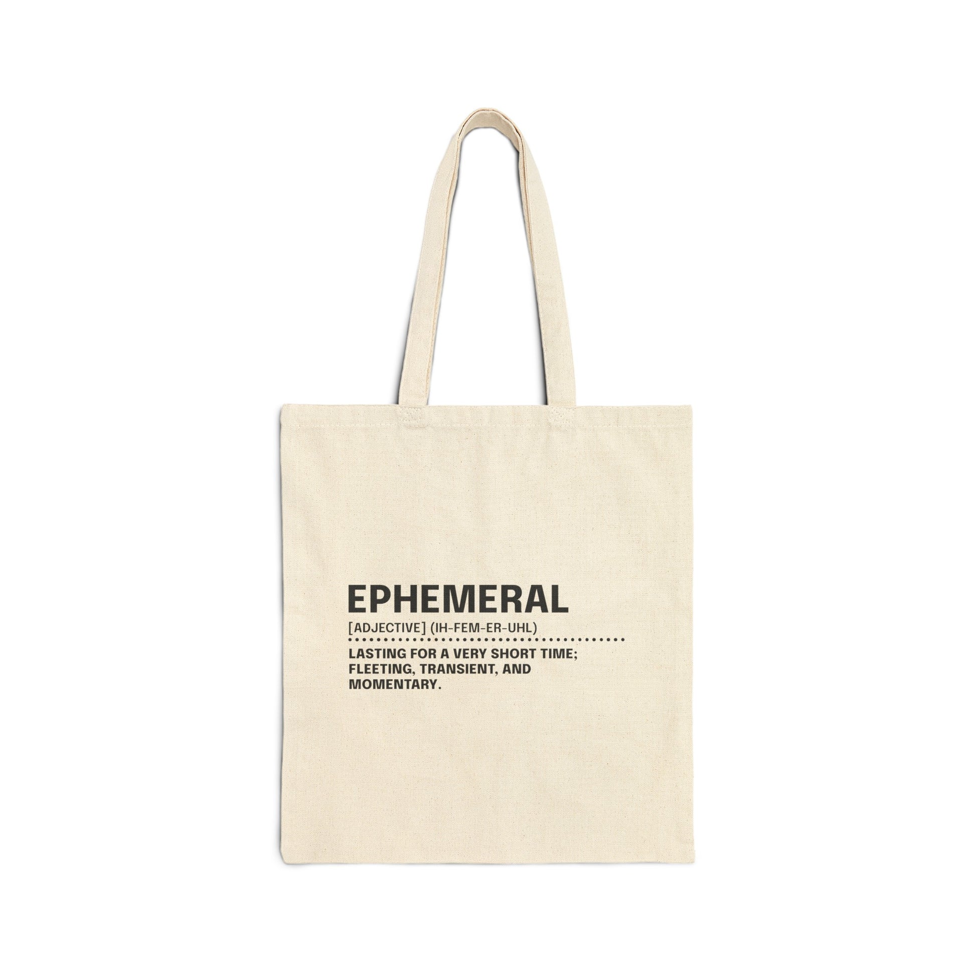 Capture the beauty of fleeting moments with The Lexicon Collection: Ephemeral Tote Bag by Exploding Imagination. This elegant tote bag features the word "Ephemeral" and its definition, celebrating the transient nature of life and the preciousness of each moment. Made from 100% cotton canvas, this bag is designed for durability and style, making it an ideal companion for your everyday activities. With a spacious 15" x 16" size and sturdy 20" handles, it’s perfect for carrying essentials while reminding you to cherish the ephemeral beauty of life.