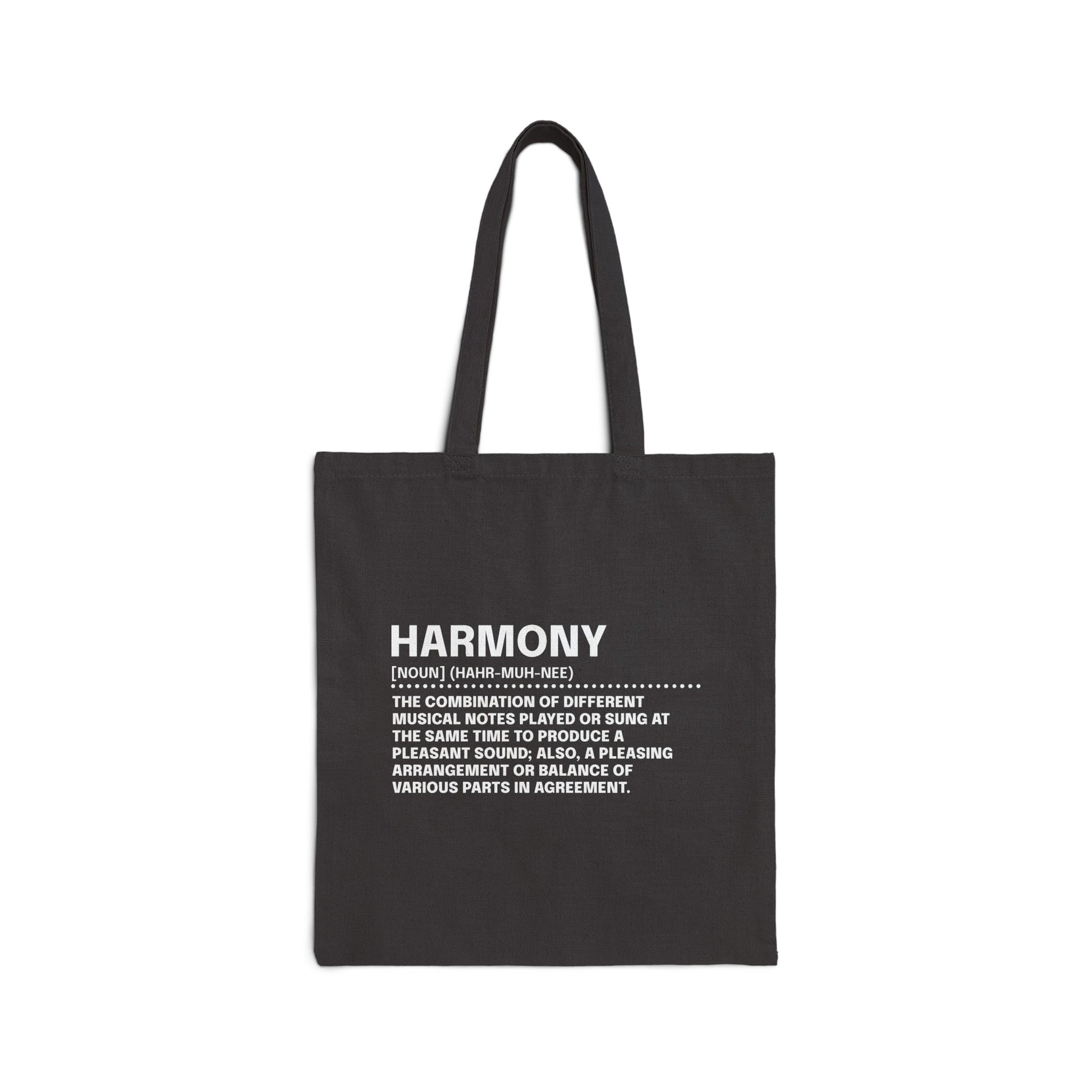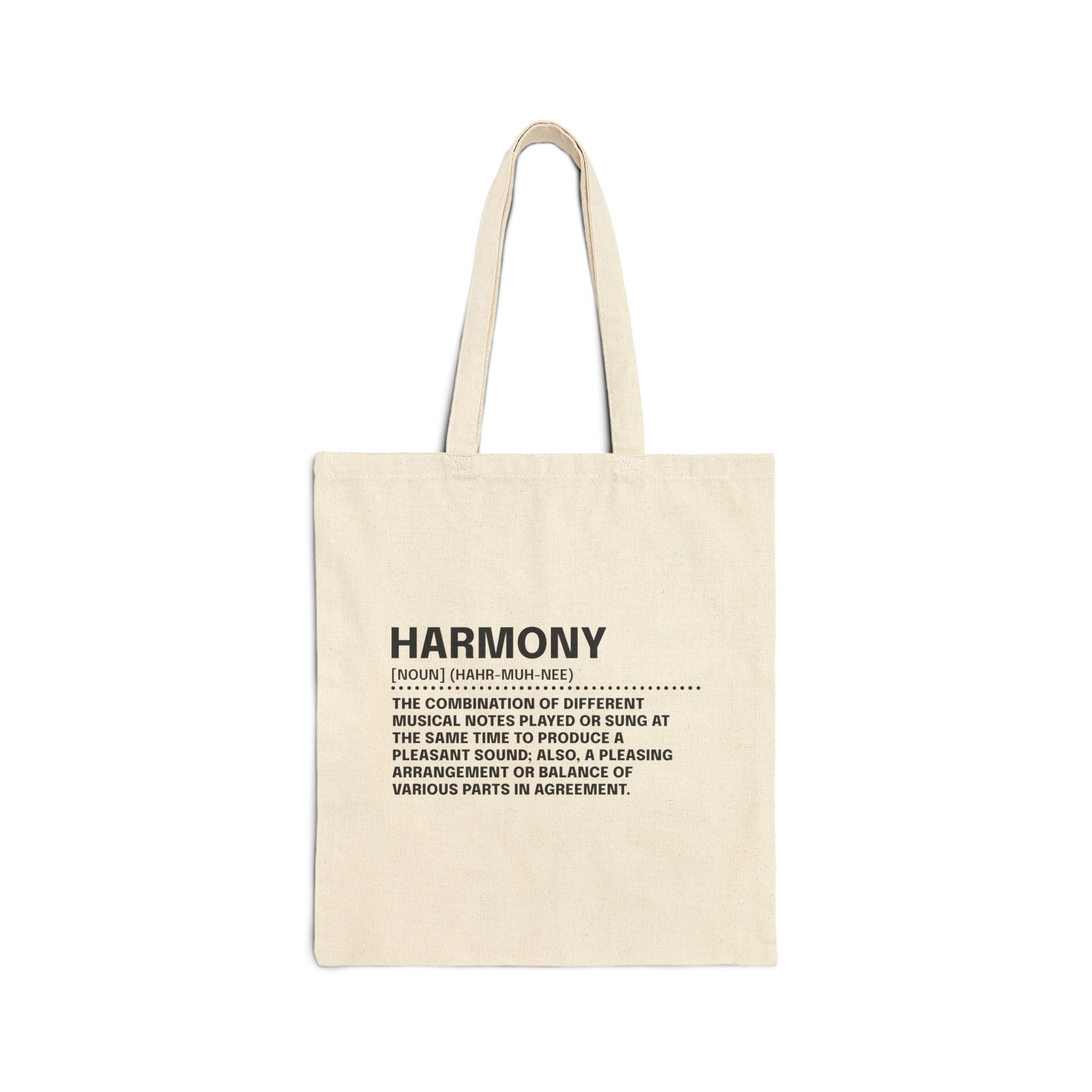 Embrace balance and peace with The Lexicon Collection: Harmony Tote Bag by Exploding Imagination. This elegant tote bag features the word "Harmony" and its definition, celebrating the beauty of balance and peaceful coexistence. Made from 100% cotton canvas, this bag offers both durability and style, making it a perfect accessory for your everyday needs. With a spacious 15" x 16" size and sturdy 20" handles, it’s ideal for carrying books, groceries, or personal items while reminding you of the importance of harmony in life.