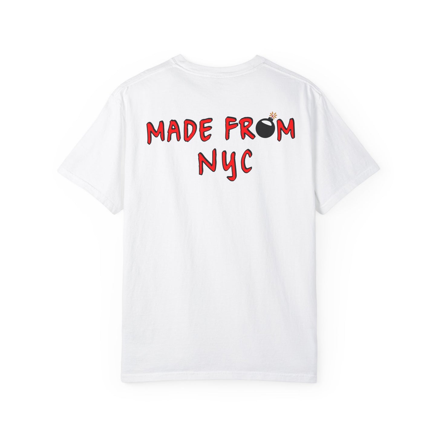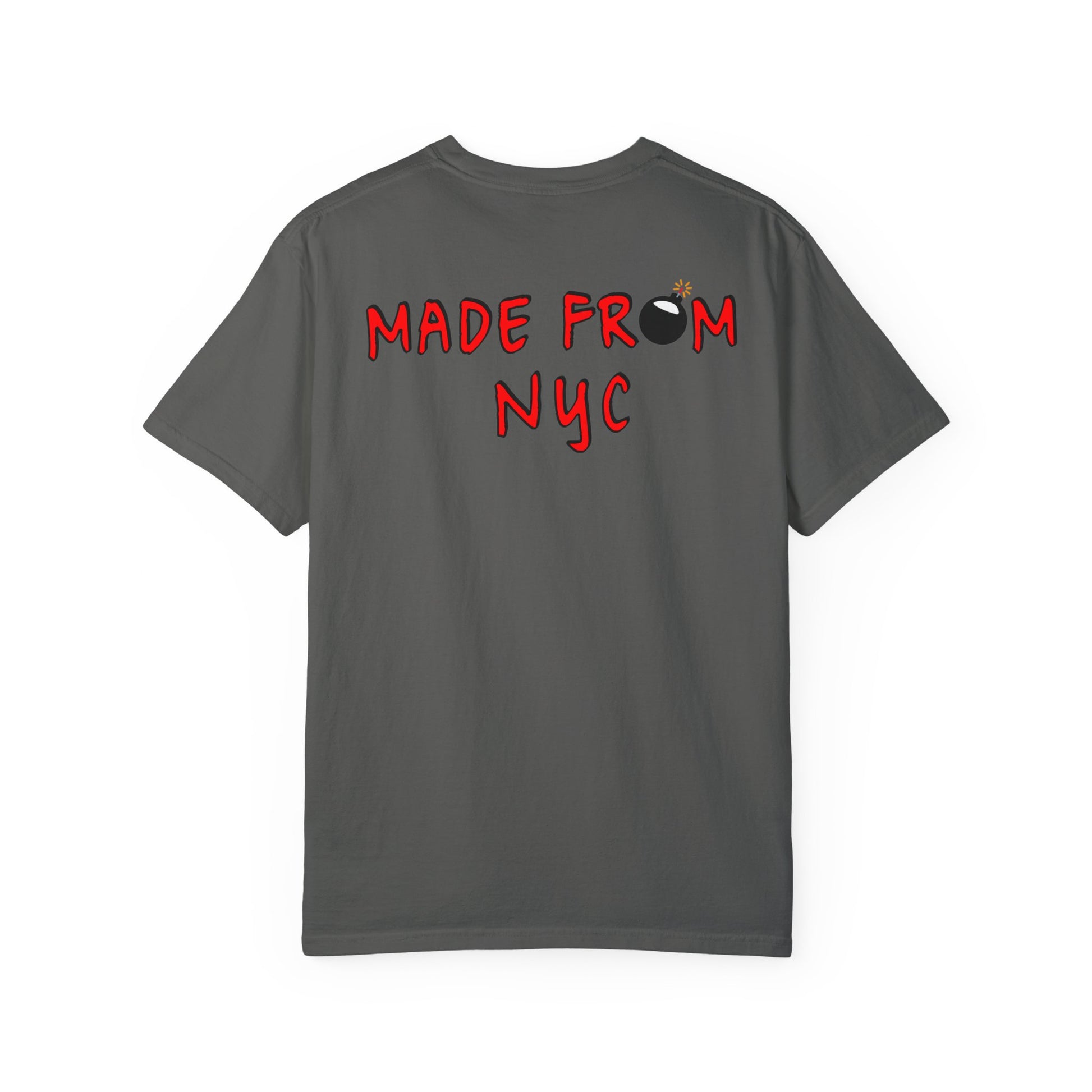 Celebrate the spirit of New York City with "The Towns" t-shirt from Exploding Imagination! This design showcases the iconic landmarks of NYC's five boroughs: the Empire State Building, the Brooklyn Bridge, Yankee Stadium, the Staten Island Ferry, and the World Sphere Globe. Perfect for New Yorkers and visitors alike who appreciate the distinct identities and attractions of Manhattan, Brooklyn, Queens, Bronx, and Staten Island.